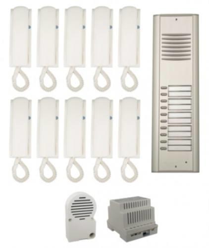 ACI FARFISA Kaputelefon szett, 4+1 vezetékes, 10 lakásos, Project-ErreP/R széria, süllyesztett kültérivel, 10xPT524SW, RP10+MD30, PRS220 egységekből