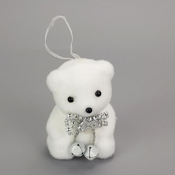 Aranyos jegesmedve figura polisztirol alapból, csengettyűvel. Téli készítményekbe vagy önmagában dekorációként. Méter: 6,5x10cm