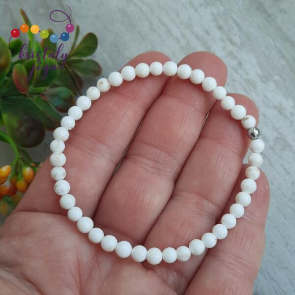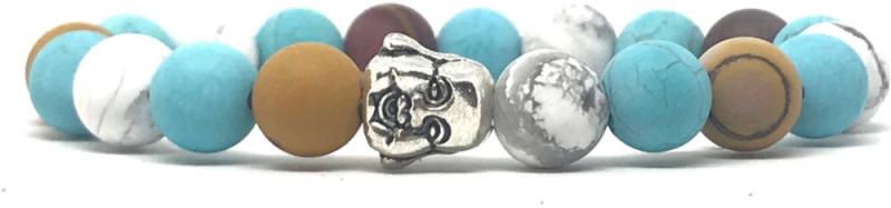 Egyedi ásvány karkötő Buddha fej köztes dísszel A 8mm-es Mokait, Türkiz és Howlit ásvány golyókból készült karkötő speciális gumis damilra van fűzve, buddha fej díszítéssel. Amit a Howlit ásványról tudni kell: A howlitot Henry How-ról, egy 19-ik századi ásványkutatóról nevezték el, aki elsőkét talált rá erre a sokoldalú kőre. A howlit festetlenül matt fehér,