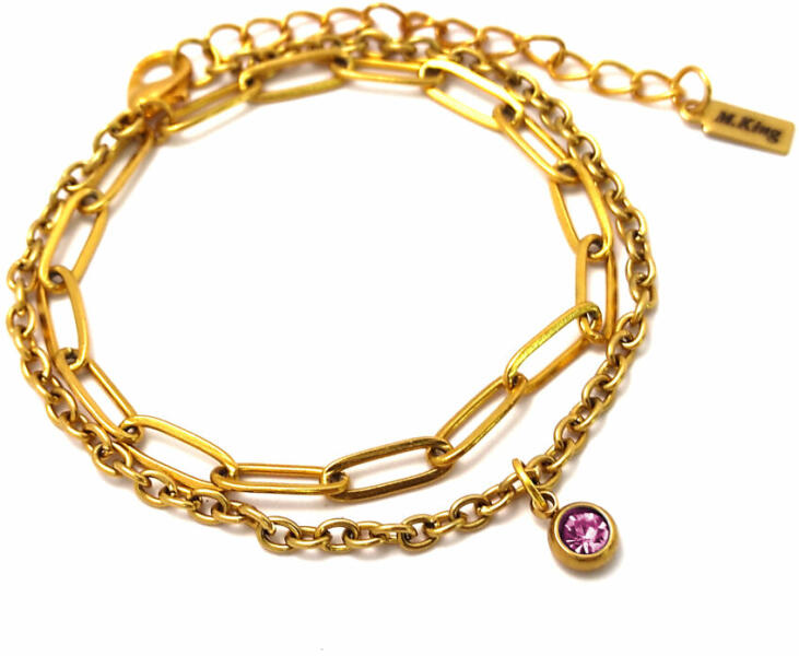 Pink kristályos charmos dupla karkötő, 1 charmmal. Paramé terek: Charm mérete 0,6 cm. Anyaga nemesacél, karkötő anyaga rozsdamentes acél. Karkötő mérete 17+5 cm. (Ha ettől eltérő méretet szeretnél, rendeléskor a MEGJEGYZÉSBE írd be. ) Szélesség 4 és 3 mm. Csajos, divatos, mégis vagány karkötő, nem túl sok, nem túl kevés, feltűnő, de nem hivalkodó.