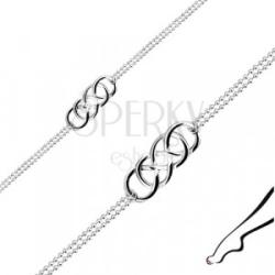 925 ezüst bokalánc kelta hurokkal, amely a lánc közepén rögzített. A díszes rész felülete fényes és enyhén domború. A hurok hátsó részén finom gravírozás, vésett minta található. A katonai dupla lánc delfinkapoccsal zárul. A lánc hosszabbítható. A lánc szélessége: 1,1 mmA lánc hossza: 235 mmA toldólánc hossza: 25 mmA lánc teljes hossza: 260 mm (+/- 5 %)A díszes