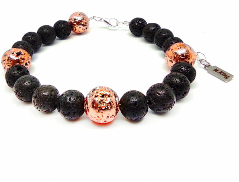 Figyelem! Nem szakad, nem nyúlik! Tartós ékszer. Kérheted csat nélküli rugalmas gumidamilra is. Amennyiben rugalmas damilra kéred, Megjegyzésbe írd be rendeléskor, hogy csat helyett rugalmas gumidamilt kérsz, és a csuklód körbemért méretét is írd meg. Az ékszer ásványai és tartozékai: – 8 mm-es matt fekete lávakő ásványok – 10 mm-es rózsaarany lávakő ásványo