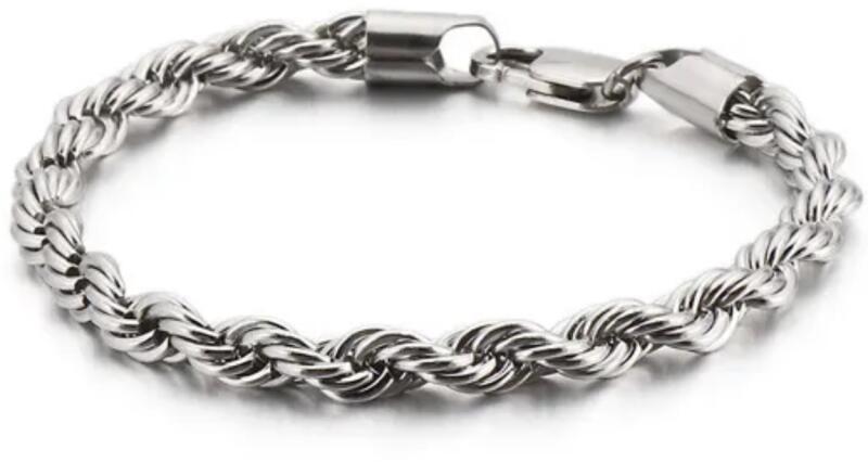Dan karlánc Fényűző karlánc, elegáns fonott és csavart kialakításban, amely tökéletes kiegészítő akár férfiak akár nők számára, akik értékelik a feltűnő, de ízléses ékszereket. Robusztus szerkezete és magas minőségű kidolgozása ideálissá teszi akár mindennapi viseletre, akár különleges alkalmakra. Tulajdonságok: Karlánc hossza: 22cm Karlánc vastagsága: 6mm