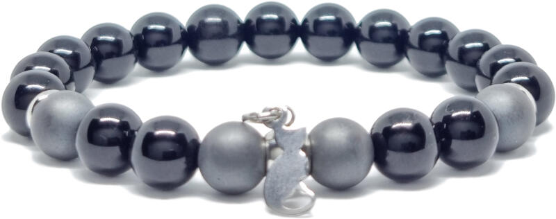 Kiváló minőségű valódi ónix ásványból készült ásvány karkötő. Az ónix karkötő mély fekete árnyalatával és erőteljes megjelenésével stílusos kiegészítő, amely magabiztosságot és stabilitást sugall viselőjének. A karkötő valódi ónix, hematit 8-9 mm ásványból és nemesacél pici cica logó dísszel készült. Az ásvány, karkötő formában viselve nemcsak s