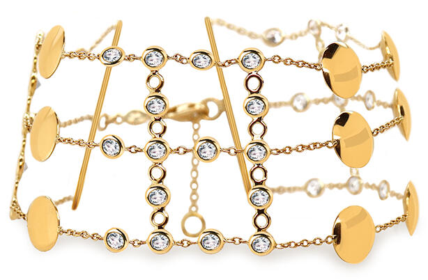 Arany háromsoros karkötő cirkóniákkal, modell IZ29952