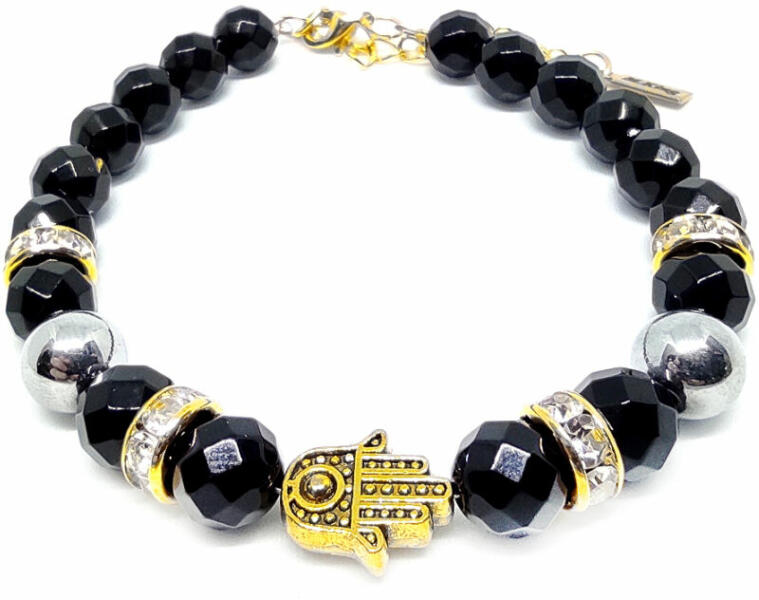 Figyelem! Nem szakad, nem nyúlik! Tartós ékszer. Kérheted csat nélküli rugalmas gumidamilra is. Amennyiben rugalmas damilra kéred, Megjegyzésbe írd be rendeléskor, hogy csat helyett rugalmas gumidamilt kérsz, és a csuklód körbemért méretét is írd meg. HA NEM KÉRSZ RÁ FATIMA KEZE DÍSZT, MEGJEGYZÉSBE ÍRD BE! Az ékszer ásványai és tartozékai: – 8 mm-es fazettált feke