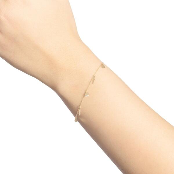 Szív mérete: 5 x 5 mmKereszt méretei: 3 x 7 mmLánc szélessége: 1 mmA karkötő hossza: 160 mmHosszabbító lánc hossza: 20 mmTeljes hossz meghosszabbítással: 180 mm (+/- 5%)A karkötő súlya: 0,97 gFémjel - Van. 14K arany karkötő szívecskékkel és keresztekkel A 14Ks sárga aranyból készült karkötőt szívecskék és egyszerű latin keresztek díszítik, felváltva felfüggesztv