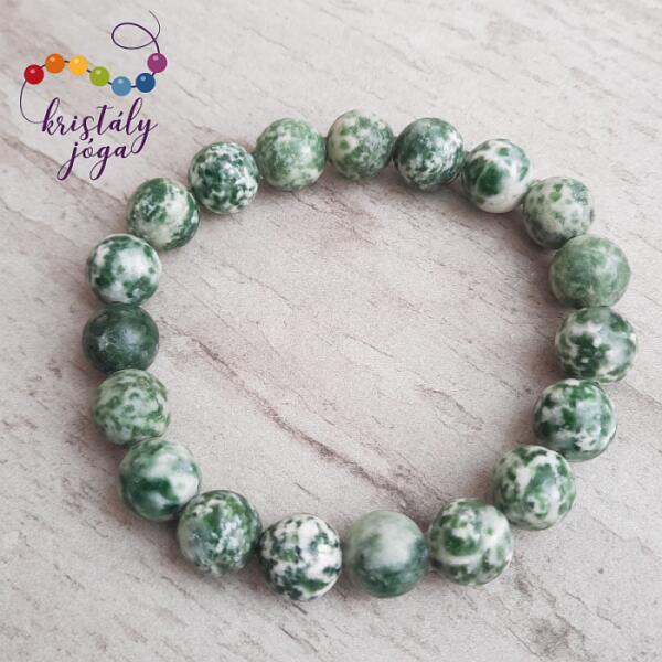 Az ásvány golyók gumira vannak felfűzve. Amit a malachitról érdemes tudnod: A malachit a karbonát ásványok közé tartozó réztartalmú ásvány. Rendszerint rostos, szálas vagy vesés, fürtös megjelenésű, néha fenn-nőtt vékony tűs kristályokban is megtalálható. Lelki gyógyhatás: Elvezet, megmutatja mi az az önutáló gondolatminta, ami már bennem a fizikai betegséget ok