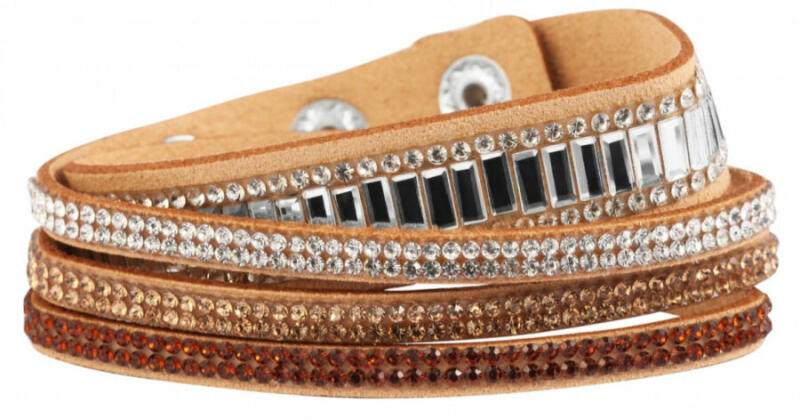 Többsoros kristályokkal kirakott divat karkötő, 2x42 cm - bézs. Modell: CC0466. Márka: Cham Cham. Mérete: 2x42 cm. Anyaga műbőr, fém és kristály. Származási hely: Németország. Egy jól megválasztott ékszer öltöztet, feldobja a napodat, valahányszor ránézel, jobb kedvre derülsz. A színekkel és anyagokkal manapság könnyű variálni a különböző stílusokat, nem kell ra