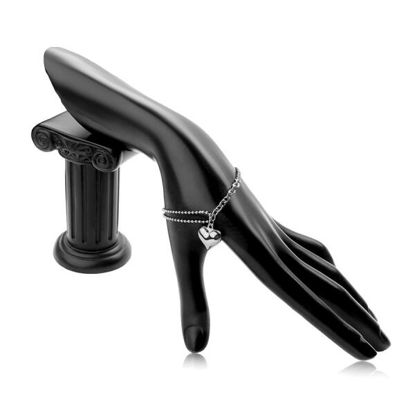 Acél karkötő az egyik oldalról megduplázott sima kerek golyókból álló lánc, amelyet "Lucky" - szerencse feliratú vonal díszít. A karkötő másik fele olyan láncot képvisel, amely ovális lapos lánc szemekből áll, amelyek függőlegesen kapcsolódnak egymáshoz. A karkötőt fényes, lekerekített szív díszíti. A karkötő homár karmos záródással rendelkezik. A meghosszabb