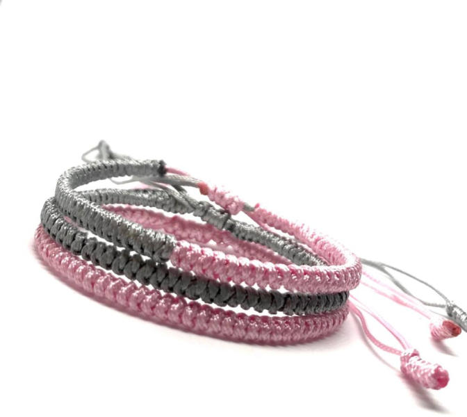 Tibeti szerencse csomózású karkötő 3 darabos Nyugalmat vonzó Tibeti szerencse csomózású pamut karkötő szett A szürke szín jelentése: A semlegesség és a hétköznapiasság színe. A rózsaszín szín jelentése: A félelem ellenszere, megnyugtatást, gyengédséget ad, csillapítja a szeretet- és önbizalomhiányt, valamint az agresszivitást. A két szín együttes viselésével n