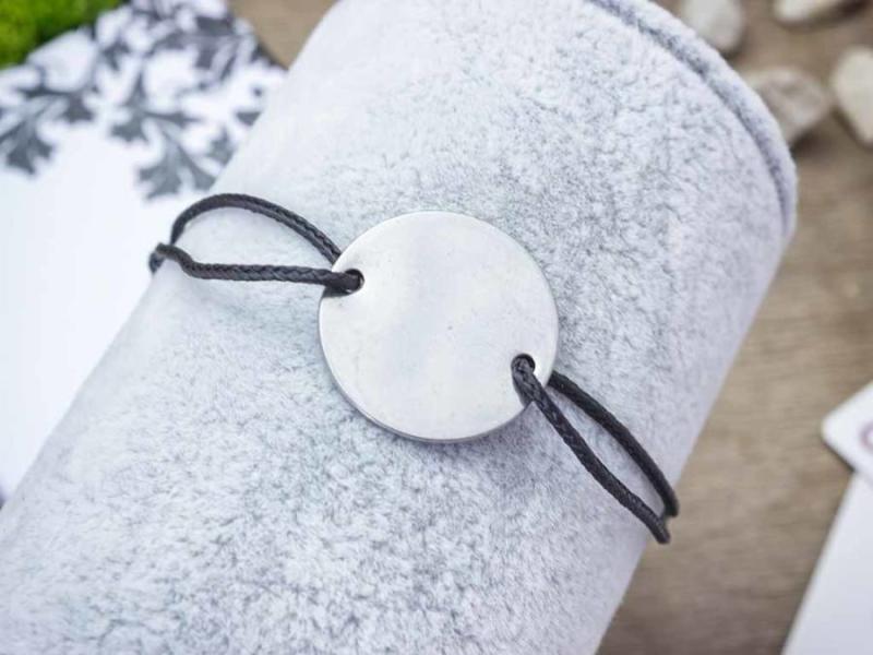 Acél MiniM nanocord karkötő kollekciónk elegáns, letisztult, könnyű nyárias hangulatú. Napi hordásra terveztük, így az acél medál nem kopik, a zsineg nem színeződik el, még ha vízzel érintkezik, akkor sem. Ezt az egyszerű, de mégis egyedi karkötő ajándék ötlet ünket e gy nanocord zsinór , és egy gravírozható acél kör medál alk ot ja . A medál 15 mm átmérőjű.