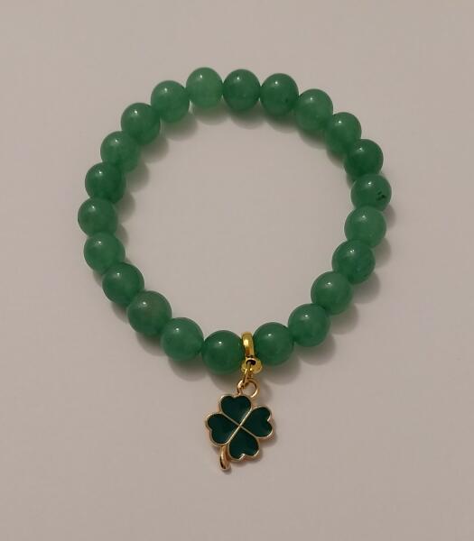Természetes Jáde ásványból készült női karkötő zöld lóhere medállal. Gyöngyök mérete: 8 mm-es ásványgyöngyök Rugalmas, gumis ékszerdamil alapra készült A Jáde a tisztaság és a nyugalom jelképe, vonzza a szerencsét Az ékszerek természetes ásványból készülnek, így méretben, színben, árnyalatban kicsit eltérhetnek a képeken láthatóktól.