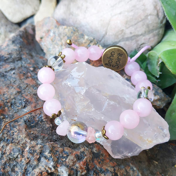 Rodonit ásványból készült női karkötő bronz színű rózsa medállal Gyöngyök mérete: 8 mm-es ásványgyöngyök Rugalmas, gumis ékszerdamil alapra készült A Rodonit a gyógyulás, a cselekvés és a megbocsátás köve. Segít megsemmisíteni akár az előző életekből származó érzelmi sebeket. Segít önmagunknak megbocsátani, támogatja az önbecsülést. Egyensúlyban tartj