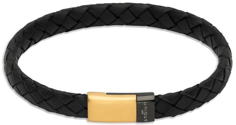 Rozsdamentes acél és bőr karkötő. Fekete szín. Fekete és sárga arany színű PVD bevonatú mágneses zár. Új 2021-es modell! Cikkszám : B495GO Szín : Fekete Karkötő anyaga : Rozsdamentes acél és bőr Méretválaszték : 21 cm Nikkelmentes : Igen Vízállóság : nem vízálló Garancia : A termékre egy év garancia érvényes!