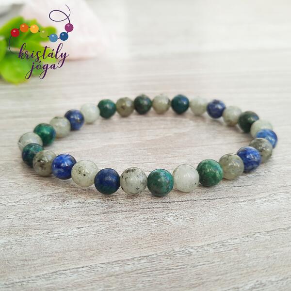 8 mm-es jáde, hematit, kalcedon és roppantott hegyikristály ásvány gyöngyökből fűzött gumis karkötő. Amit a jádéról érdemes tudnod: A Jáde egy gyűjtőcsoportja a kövek egy fajtájának. Lelki gyógyhatása: Több örömmel és életkedvvel ajándékoz meg minket. Növeli a bennünk lévő szeretetet, a harmónia iránti igényünket. Testi gyógyhatás: Szabályozza a szervezet
