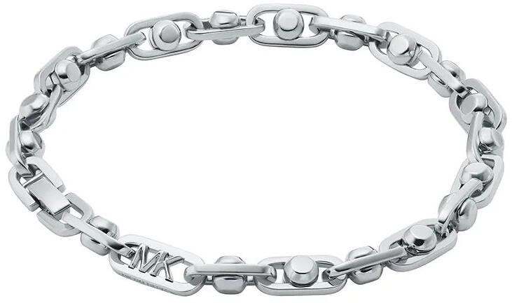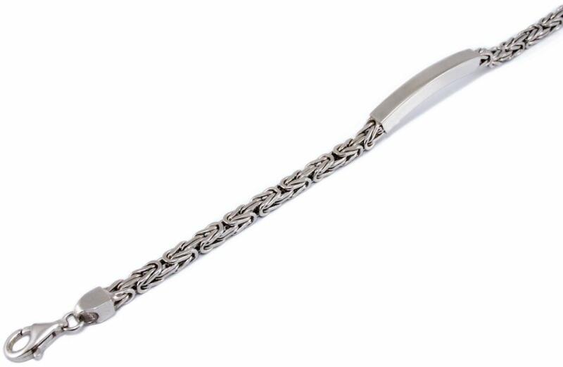 Klasszikus és kedvelt fazonú, ródiummal bevont, tömör szemekből készült, közepén lapbetéttel díszített, masszív "Király" típusú ezüst karkötő.