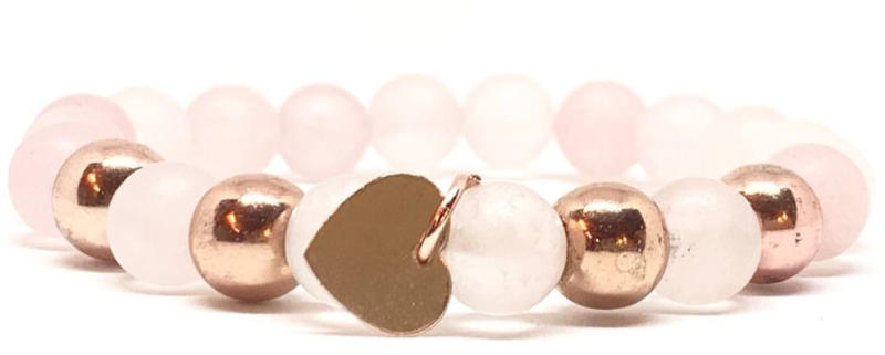 Medálos-Zsuzsus ásvány karkötő A 8 mm-es Rózsakvarc és Hematit ásvány golyós karkötők speciális gumis damilra vannak fűzve, szív medál díszítéssel. Amit a Rózsakvarc ásványról tudni kell: A festetlen rózsakvarc az egész világos, szinte áttetszőtől, a ködös középrózsaszínig terjed. Az egyik legnépszerűbb kövek egyike, amely szépséges küllemének és erős gy