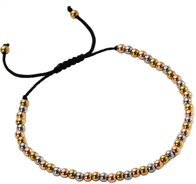 Carola Karkötő Különleges, divatos Carola karkötő verhetetlen áron. Az ékszer nem tartalmaz nikkelt, ezért érzékeny bőrű emberek is viselhetik. Tulajdonságok: A karkötő mérete: Húzással állítható A gyöngyöcskék mérete: 0,3cm Anyaga: Nemesacél, Pamut zsinór Szín: Arany/RózsaArany/Ezüst