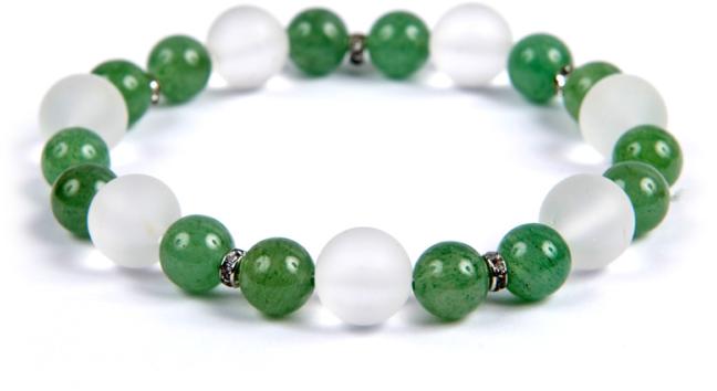 A karkötő 10 mm-es matt hegyikristály és 8 mm-es aventurin gömböket tartalmaz, duplasorosan gumira felfűzve. Díszítőelem : 4 mm-es strasszgyűrű. A karkötő méretének meghatározása : a csuklód méretéhez adj hozzá kb. 1,5 cm-t. Az ásványok nem helyettesítik az orvosi diagnózist és kezelést. A hegyikristály hatása : a hegyikristály egy átlátszó ásvány, amely nagysze