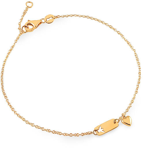 Stílusos híresség egy modern nő vagy lány számára. A finom láncot két téglalap alakú tányér és egy szív alakú medál díszíti. A tányért ráadásul egy faragott angyal díszíti. Sárga aranyból készült, magasfényű. Biztonságos karabinerrel történő rögzítést alkalmazunk.