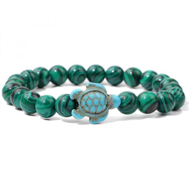 Tortuga Karkötő Modern Tortuga karkötő verhetetlen áron. Kialakításával Önt is biztosan elbűvöli, szépen kiegészíti öltözékét. Az ékszer nem tartalmaz nikkelt, ezért érzékeny bőrű emberek is viselhetik. Tulajdonságok: A karkötő mérete: gumis Szín: Zöld Anyaga: Gyöngygolyócskák A golyócskák mérete: 0,8cm Díszítése: Teknős medál