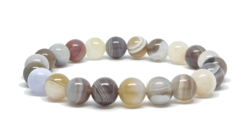 Kiváló minőségű valódi achát Botswana ásványból készült natúr ásvány karkötő. Az achát Botswana karkötő különleges mintázata és földszínei nemcsak stílusos kiegészítőt kínálnak, hanem a rugalmasság és az alkalmazkodóképesség szimbólumaként is megjelenik. A karkötő 8-9 mm ásványból készült. Az ásvány, karkötő formában viselve nemcsak stílusos kieg