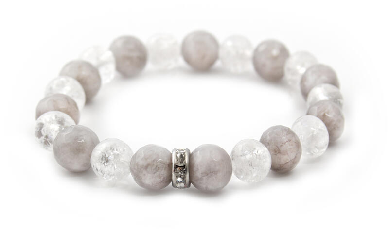 A fényes és matt felületű rózsakvarc, tejkvarc és roppantott hegykristály 8 mm-es ásvány gyöngyök gumira vannak felfűzve. A karkötőt acél köztes elemek is díszítik. Amit a rózsakvarc ról érdemes tudnod: A festetlen rózsakvarc az egész világos, szinte áttetszőtől, a ködös középrózsaszínig terjed. Az egyik legnépszerűbb kövek egyike, amely szépséges küllemének