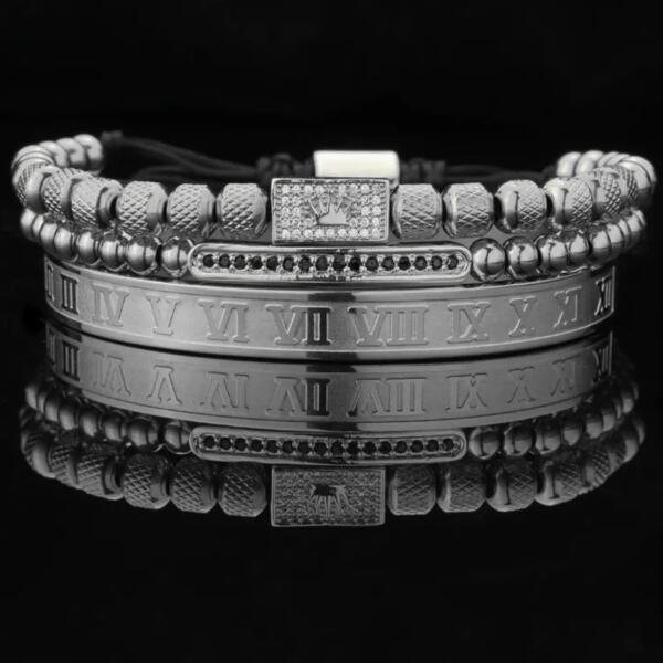 Amba karkötők Az Amba karkötők egy csipetnyi királyi luxust és kifinomultságot adnak csuklójának. Ez a három karkötő különböző stílusokat kombinál: az egyik római számokkal, a másik feltűnő gyöngyökkel és részletekkel, a harmadik pedig díszes koronás, cirkónia ékkövekkel kirakott medállal díszítettek. A karkötők eleganciát és bájt sugároznak. Mindegyik kark
