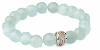 KÉZZEL KÉSZÜLT MINŐSÉGI ALAPANYAGOK EGYEDI TERVEZÉS AKVAMARIN - bátorság köve Fedezd fel a lenyűgöző fazettált ásvány gyöngyökből készült karkötőt, melyet egy exkluzív csillogó cirkónia köves köztes díszít. Ez a minőségi ékszer bármilyen szettet feldob és a figyelem középpontjába helyez. Tökéletes választás olyan nőknek, akik szeretnének kiemelkedni a tö