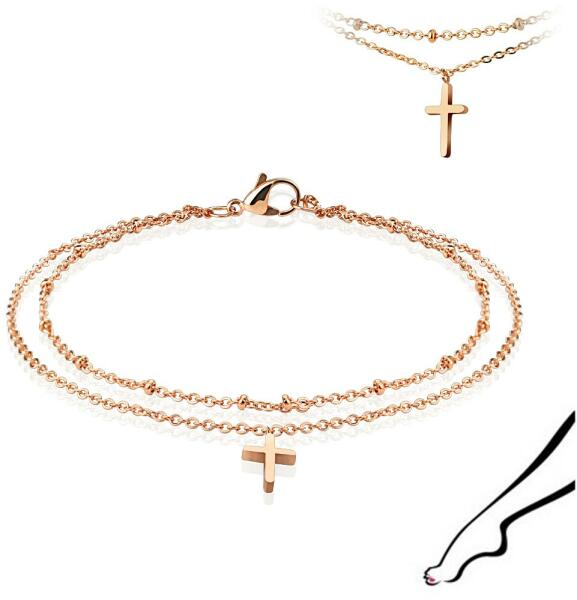 Az acél lánc két, ovális láncszemekből álló láncból áll, amelyek függőlegesen kapcsolódnak össze. A rövidebb láncra egyenlő távolságban lapított sima gyöngyök vannak. A hosszabb láncot tükörfényes latin kereszt formájú medál díszíti. A karkötő hosszabbító lánccal és homárkaromzárral rendelkezik. Lánc szélesség: 1,7 mm A karkötő hossza: 225 mm Hosszabbí