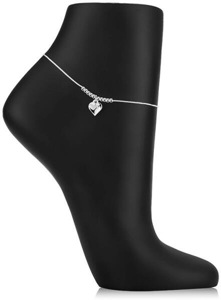 A 925 ezüstből készült bokalánc szögletes láncszemekből kialakított lánccal rendelkezik, amelyek sűrűn függőlegesen kapcsolódnak egymáshoz. A medál egy sima, domború szív. A szívet mindkét oldalon öt sima fényes gyöngysor szegélyezi. A karkötő rugós gyűrűzárral rendelkezik. A medál méretei: 8 x 11 mmLánc szélessége: 0,9 mmA karkötő hossza: 220 mmHosszabbító