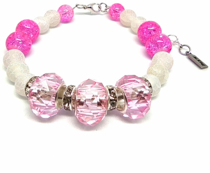 Figyelem! Nem szakad, nem nyúlik! Tartós ékszer. Kérheted csat nélküli rugalmas gumidamilra is. Amennyiben rugalmas damilra kéred, Megjegyzésbe írd be rendeléskor, hogy csat helyett rugalmas gumidamilt kérsz, és a csuklód körbemért méretét is írd meg. Az ékszer ásványai és tartozékai: – 8 mm-es roppantott fehér tűz achát ásványok – 8 mm-es és 10 mm-es pink ropp