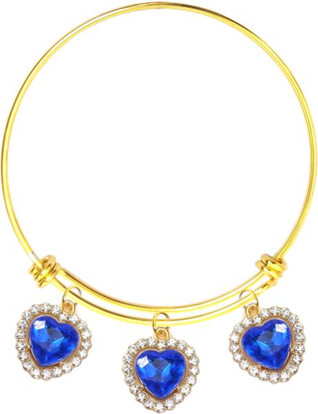 3 kék kristály szív charmos nemesacél karperec. Romantikus ajándék lehet ez a kristály szív charmokkal díszített karperec, csillog, de nem hivalkodó, feltűnő, de nem túl sok mégsem. Átmér ője 6 cm. Valamelyest rugalmasan felvehető, nem nyitható, tehát a kézfej is átbújik a karperecen. Kb. 17-18 cm-es körméretű csuklóig ajánlott. Paraméterek: C harmok mérete kb. 1,6 c