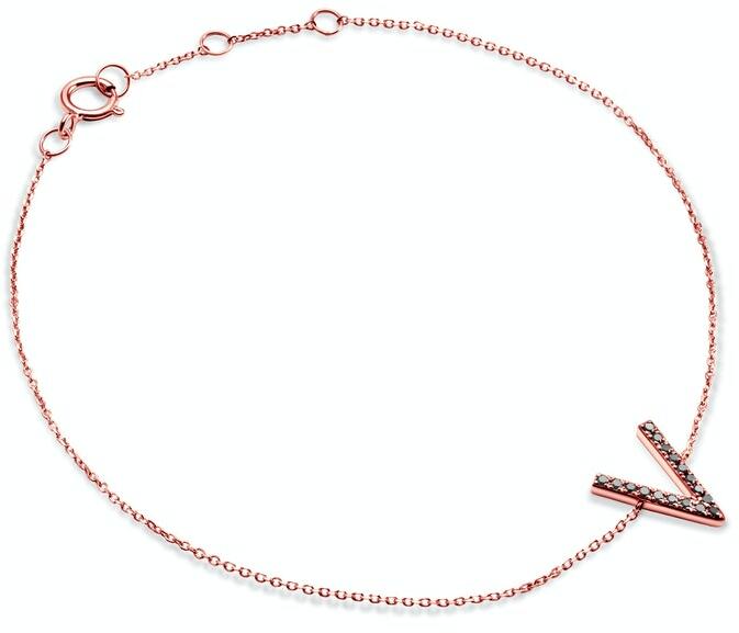 SAVICKI V betűs karkötő: rózsaarany fekete gyémántokkal