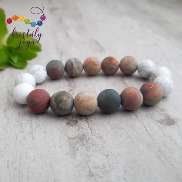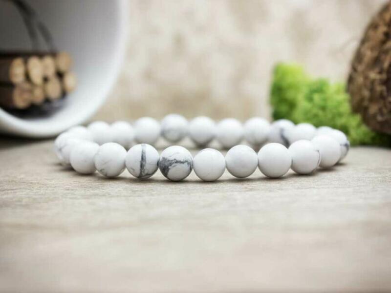 Az ásvány golyók gumira vannak felfűzve. Amit a howlitról érdemes tudnod: A howlitot Henry How-ról, egy 19-ik századi ásványkutatóról nevezték el, aki elsőkét talált rá erre a sokoldalú kőre. A howlit festetlenül matt fehér, vagy elefántcsont-színű, barnás-feketés-márványos erezettel. Lelki gyógyhatás: A howlit támogatja az ítélőképességünket, erősíti az akar