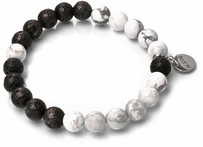 Egyszerűségében nagyszerű lávakő és howlit ásvány karkötő, férfiaknak és nőknek is. Letisztult dizájn, semmi sallang, semmi giccs. A Maria King kollekció kiemelt darabja. Figyelem! A képen exkluzív kivitelű, rugalmas karkötő látható kapocs nélkül, de kérheted extra erős acélsodronyra is delfinkapoccsal és 5 cm hosszabbítólánccal. Ha a kapcsos verziót kéred, ami ne