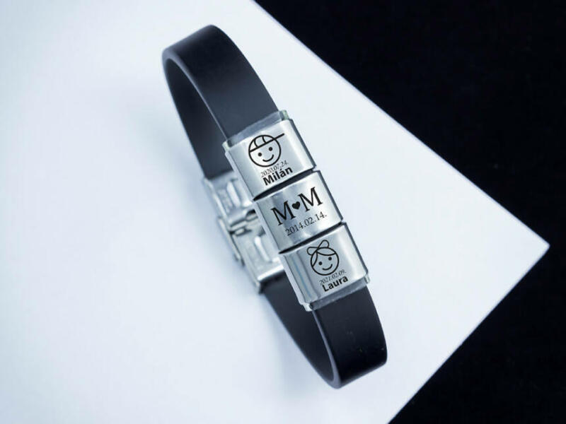 Emlékőrző ékszerben a Te varázslatod! Két medálra 2 gyermeked keresztnevét, és születési dátumát gravírozzuk! A harmadik medálra a keresztnevetek kezdőbetűjét, és egy számotokra fontos dátumot gravírozunk! (Lézer gravírozott szögletes alakú nemesacél csúszó medálok - 12×10 mm méretű)Az ár tartalmazza a gravírozás költségét. A gravírozási idő rendeléstől