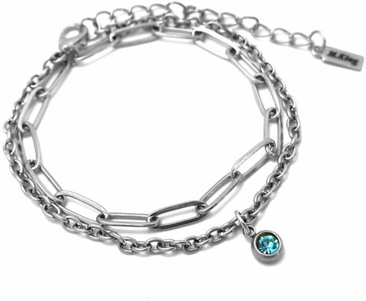 Kék kristályos charmos dupla karkötő, 1 charmmal. Paramé terek: Charm mérete 0,6 cm. Anyaga nemesacél, karkötő anyaga rozsdamentes acél. Karkötő mérete 17+5 cm. (Ha ettől eltérő méretet szeretnél, rendeléskor a MEGJEGYZÉSBE írd be. ) Szélesség 4 és 3 mm. Csajos, divatos, mégis vagány karkötő, nem túl sok, nem túl kevés, feltűnő, de nem hivalkodó.