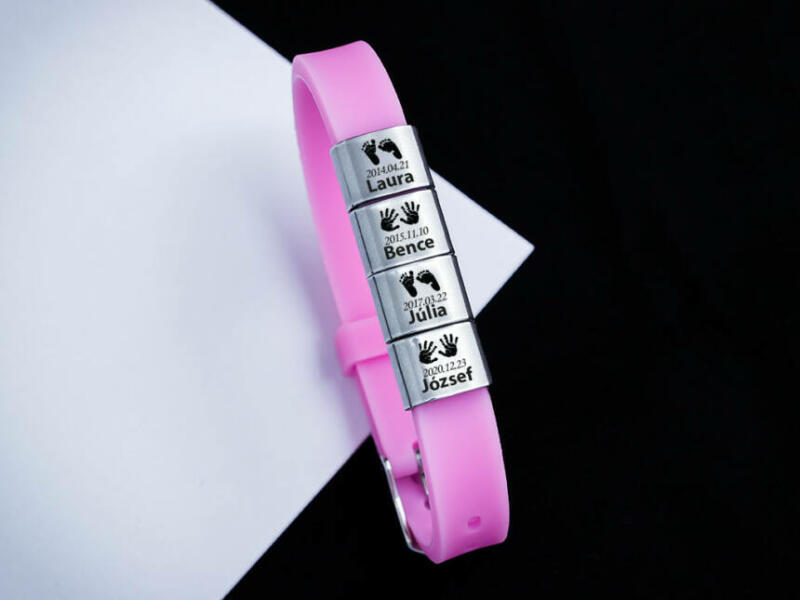 Emlékőrző ékszerben a Te varázslatod! A négy medálra 4 gyermeked keresztnevét és születési dátumát gravírozzuk! (Lézer gravírozott szögletes alakú nemesacél csúszó medálok - 12×10 mm méretű) A kollekciónk azért kelt életre, hogy ne csak szívünkben, hanem ékszerként is hordhassuk ezt a varázslatot. Az ár tartalmazza a gravírozás költségét. A gravírozási idő