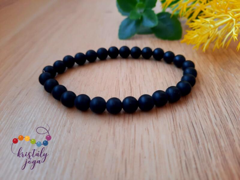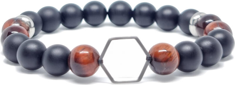Kiváló minőségű valódi ónix matt ásványból készült ásvány karkötő. Az ónix karkötő mély fekete árnyalatával és erőteljes megjelenésével stílusos kiegészítő, amely magabiztosságot és stabilitá st sugall viselőjének. A karkötő valódi ónix matt, macskaszem 8-9 mm ásványból és nemesacél hexagon összekötő dísszel készült. Az ásvány, karkötő form