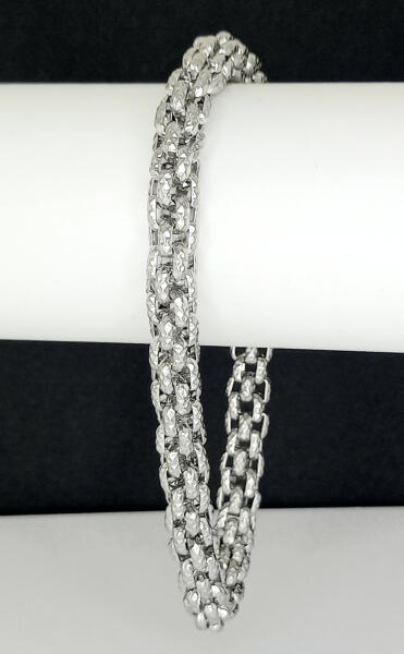 Ezüstszínű nemesacél (316L) karkötő, melyet mart minta díszít. Tartós, időtálló ékszer, nem feketedik, nem kopik. Mindennapi viseletre is tökéletes választás. Antiallergén ékszer. Karkötő szélessége: 7 mm. Karkötő hossza: 22,5 cm. A nemesacél ékszerek rendkívül népszerűek kedvező tulajdonságaik miatt. A nemesacél semmilyen nikkelsót nem bocsájt ki magából, enn