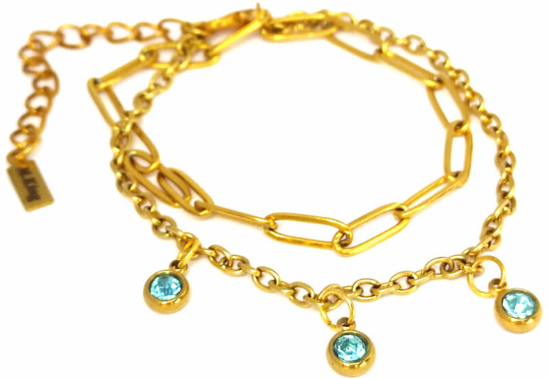 Kék kristályos charmos dupla karkötő, 3 charmmal. Paramé terek: Charm mérete 0,6 cm. Anyaga nemesacél, karkötő anyaga rozsdamentes acél. Karkötő mérete 17+5 cm. (Ha ettől eltérő méretet szeretnél, rendeléskor a MEGJEGYZÉSBE írd be. ) Szélesség 4 és 3 mm. Csajos, divatos, mégis vagány karkötő, nem túl sok, nem túl kevés, feltűnő, de nem hivalkodó.