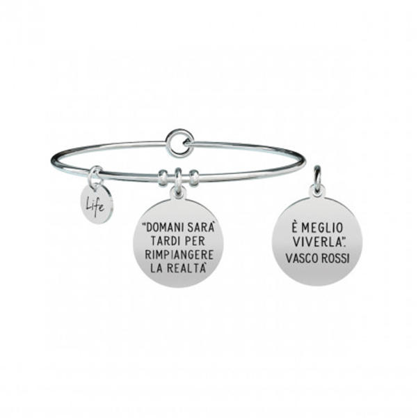 Karkötő "Domani sará tardi per rimpiangere la realitá é meglio viverla. Vasco Rossi" felirattal, kerek medállal A Free Time kollekció tagja