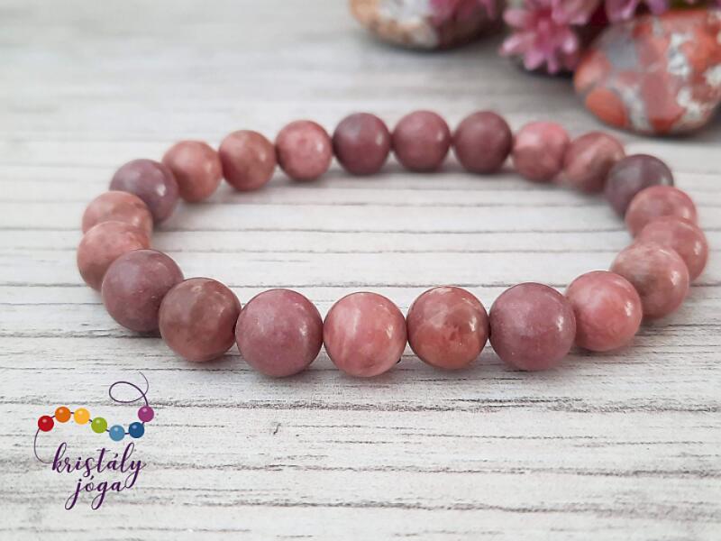 A rodokrozit ásvány golyók gumira vannak felfűzve. Amit a rodokrozitról érdemes tudnod: A rodokrozit egy karbonátásvány, a mangán-karbonát trigonális kristályrendszerű ásványa. Lelki gyógyhatása: Ha a rodokrozit belép az életembe, akkor eljött az ideje az önszeretetnek. Feltárja ebben való hiányosságaimat. Segítségével megtudhatom, amit tennem kell az önszeretet érde