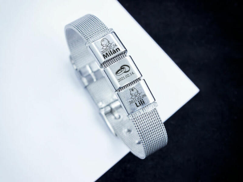 Emlékőrző ékszerben a Te varázslatod! Két medálra 2 gyermeked keresztnevét, és születési dátumát gravírozzuk! A harmadik medálra a házasságkötésetek dátumát gravírozzuk! (Lézer gravírozott szögletes alakú nemesacél csúszó medálok - 12×10 mm méretű) Az ár tartalmazza a gravírozás költségét. A gravírozási idő rendeléstől számított 2 hét , de erről kül