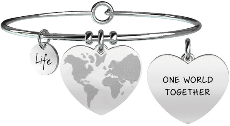 Karkötő szív alakú földet ábrázoló medállal és "One world together" felirattal A Love kollekció tadja