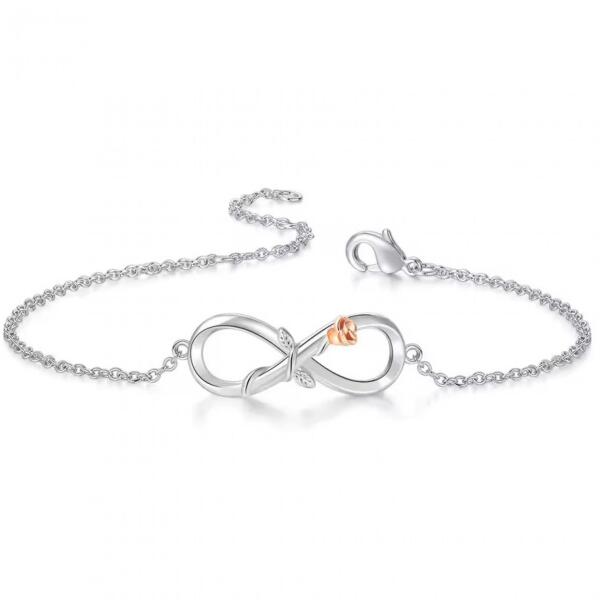 Infinity Rose Karkötő Ez az Infinity Rose karkötő tökéletesen összeköti az eleganciát a szimbolikával. Végtelen alakú medálja apró, mutatós rózsával díszített, az örök szerelmet és összetartozást jelképezi. Akár hétköznapokon, akár speciális alkalmakra is viselhető. Ideális ajándék a szeretett személy számára, vagy mint elegáns új darab a saját ékszergyűjt
