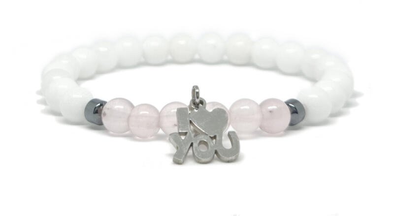 Kiváló minőségű valódi fehér jade ásványból készült ásvány karkötő. A fehér jáde karkötő finom eleganciát kölcsönöz, miközben a harmónia és a nyugalom szimbóluma, tökéletesen kiegészítve a mindennapi megjelenését. A karkötő valódi fehér jade, rózsakvarc 6 mm ásványból és nemesacél I love you logó dísszel készült. Az ásvány, karkötő formában vise
