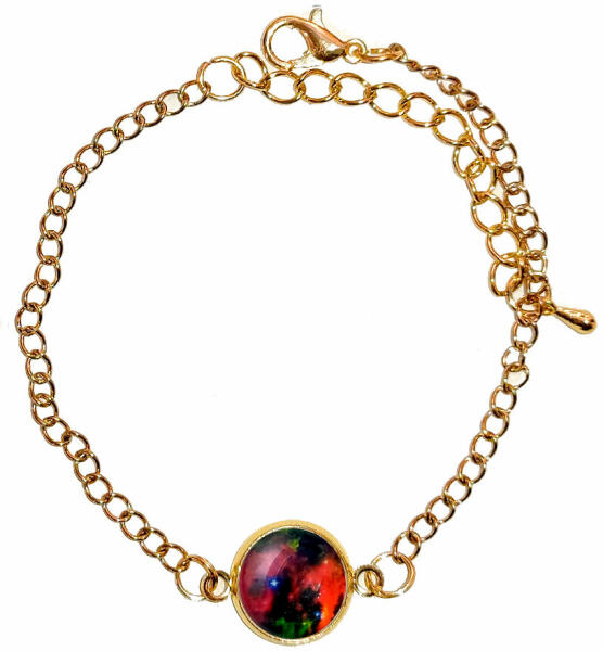 Világűr piros charmos karkötő, választható arany és ezüst színben. Egyedi, szép, kézzel készült üveglencsés ékszer, akár ajándékba is ideális. Válasz d ki a listából, hogy arany vagy ezüst színben, és milyen méretben kéred, vagy írd be rendeléskor a MEGJEGYZÉSBE. Az alapár 17 cm-es karkötőt tartalmaz. Paraméterek : A minta alapja fém, rajta domború üveg (12 mm